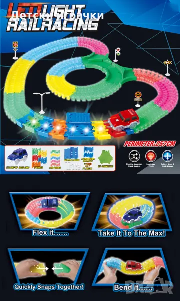 Чисто нов вид състезателна писта, която се огъва и блести, както не сте виждали досега. Можете магически да извивате парчетата на пистата за завъртания и обръщания с различни форми всеки път.