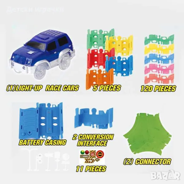 Комплекта включва части в различни цветове и е гъвкав за създаване на невероятни комбинации.