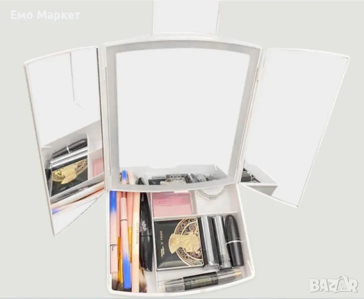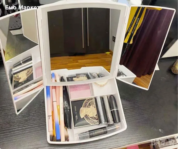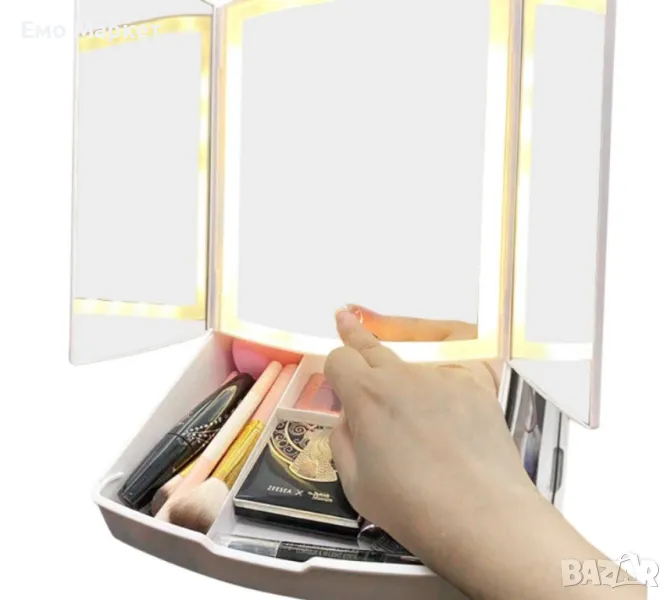 Разполага с вградено LED осветление за перфектна видимост и удобен органайзер за съхранение на гримове и аксесоари.