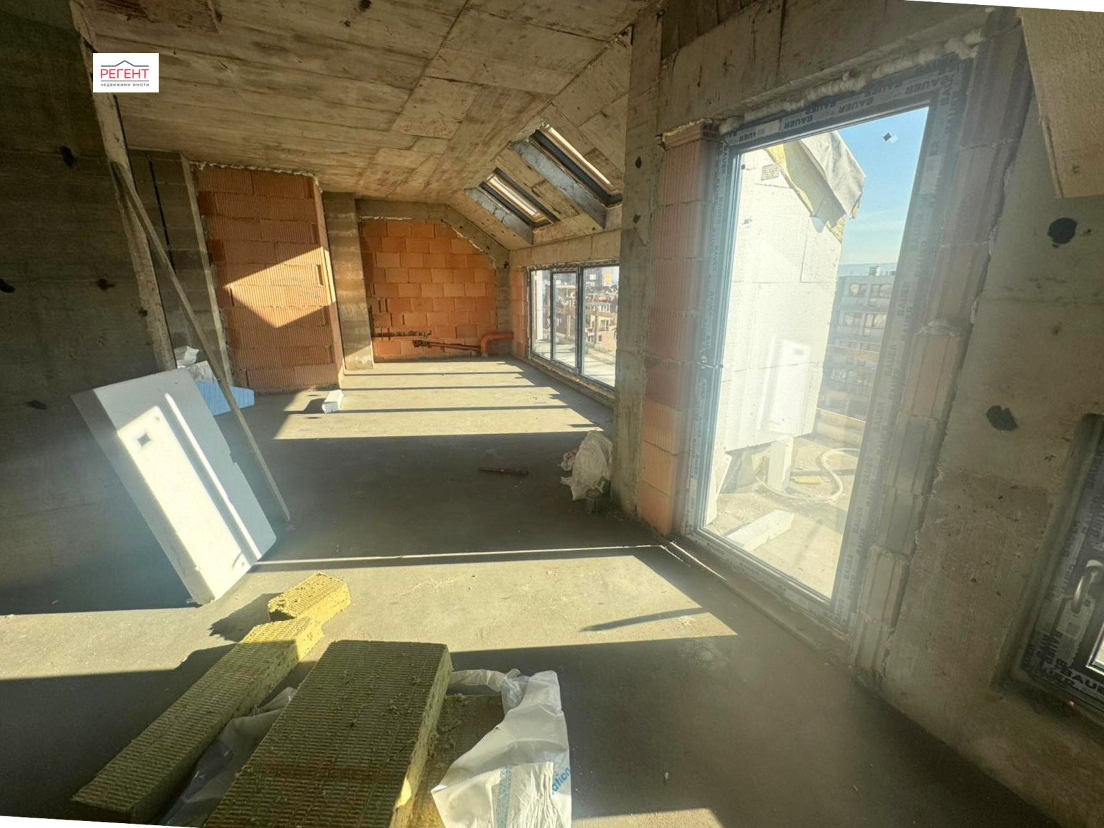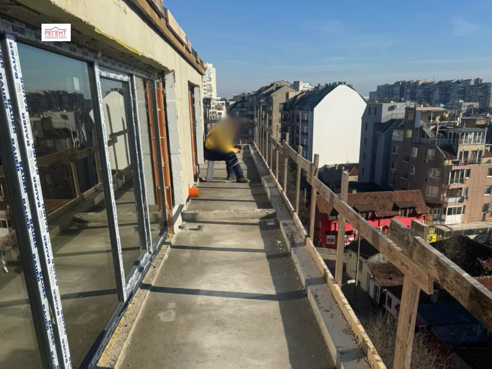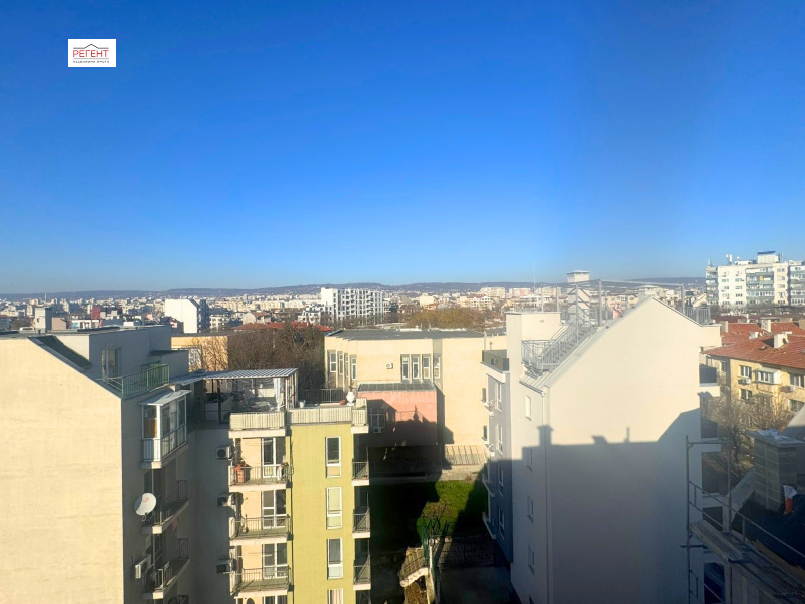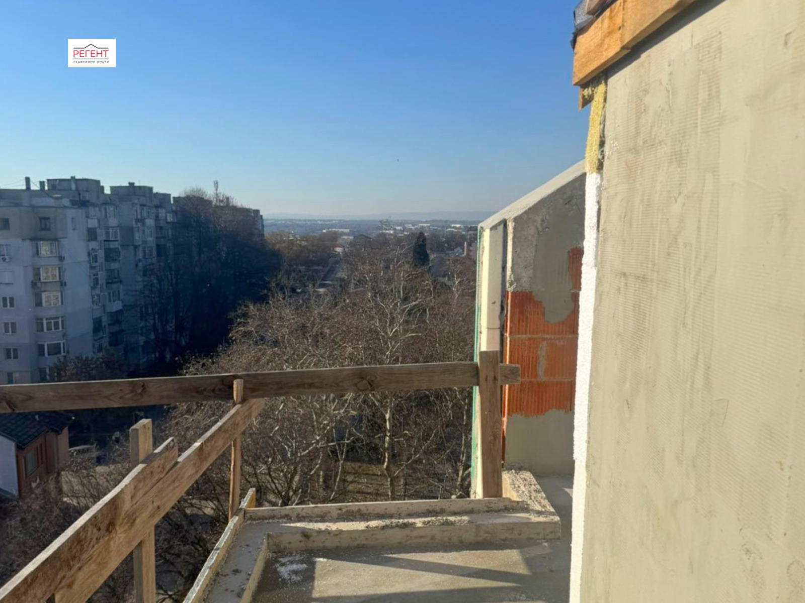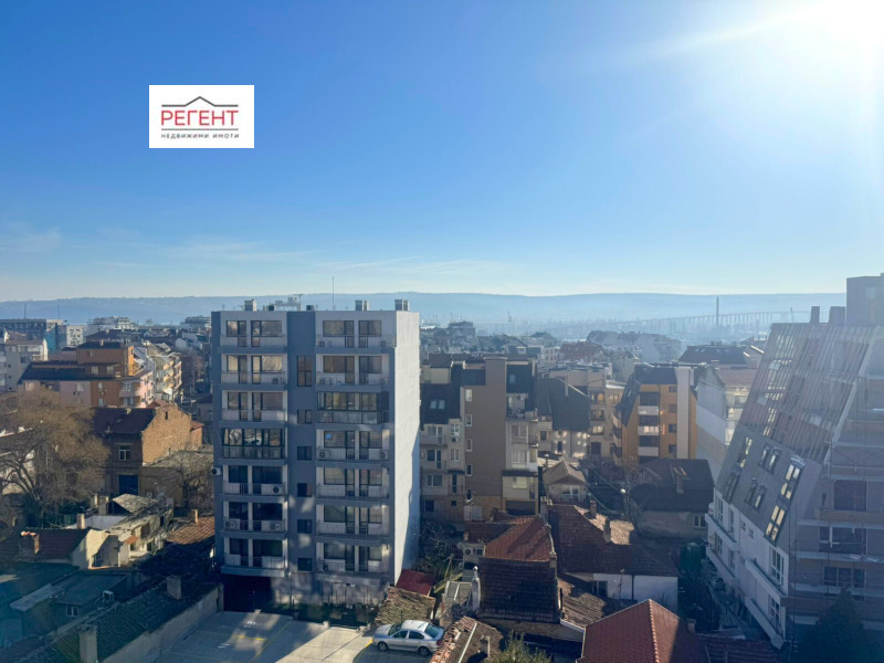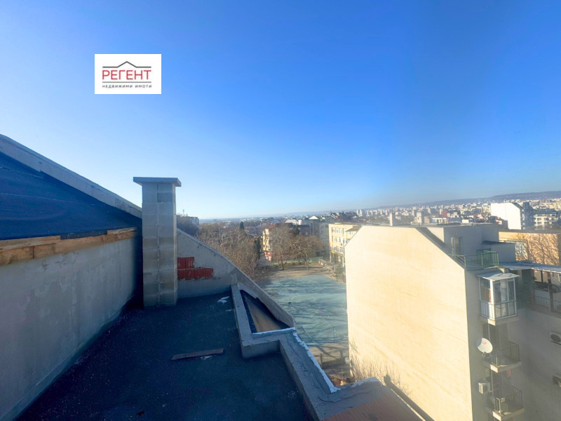Представяме ви панорамен апартамент в широкия център на гр. Варна. Имотът се намира на осми последен етаж в новострояща се сграда с асансьор. По скица квадратурата му е :156 кв. м, в които са включени три тераси и общи части на сградата. Разпределението му е следното: широк коридор ни отвежда в просторна всекидневна с кухненски бокс, която е с югозападно изложение. От терасата към нея, която е с площ 10 кв. м., се открива уникална панорама към централната градска част на гр. Варна. В съседство на всекидневната е спаля със същото изложение, следват баня с тоалетна, килер и задни тераси, които заобикалят целия апартамент. Едната е с площ: 24,92 кв.м., другата е : 18,76 кв. м. Предстои издаване на акт 16 през 2025 г., към този апартамент може да се закупят и две парко места в закрит паркинг в подножието на сградата. Едното парко място е на първа линия с цена: 18,500 евро , а другото е зад него с цена 16 500 евро. Ако това е търсеният от вас имот , обадете ни се!