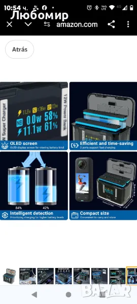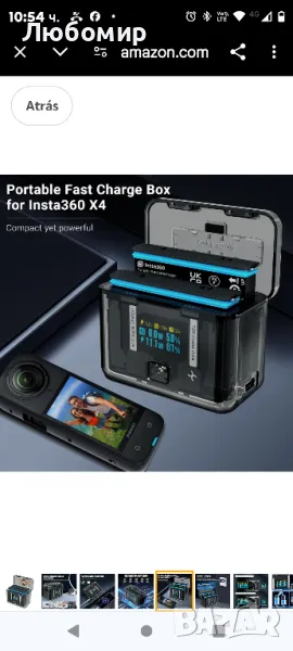Insta 360 X4 за аксесоари Insta360 X4, интелигентен OLED дисплей, двупосочен хъб за зареждане за Insta360 X4, хъб за бързо зареждане за аксесоари.Интелигентно зареждане и двупосочно зарядно устройство: Това зарядно устройство за батерии Insta360 X4 е предназначено за безопасно съхранение и зареждане на батерии Insta360 X4. Оборудван е с 2 независими 15W Max зарядни канала за супер бързо зареждане и може да работи и като преносимо зарядно за външни устройства.По-бърза 15W максимална скорост на зареждане: Този хъб за бързо зареждане Insta360 X4 може да зарежда две батерии от 20% до 95% за 35 минути при 12W на канал или от 0% до 95% за 45 минути и до 100% за 54 минути при стайна температура . В режим на усилване от 15 W той се зарежда от 20% до 95% за 28 минути.Интелигентен чип и функции за безопасност: Хъбът за зарядно устройство за батерии insta360 x4 включва интелигентен чип, който осигурява защита от свръхнапрежение, свръхток, свръхмощност и температура, като гарантира безопасността на зареждането на батерията.OLED дисплей и подробна информация за батерията: OLED дисплеят показва ключова информация като състояние на зареждане, мощност на зареждане, напрежение, ток, здраве, брой цикли, температура и капацитет на всяка батерия insta360.