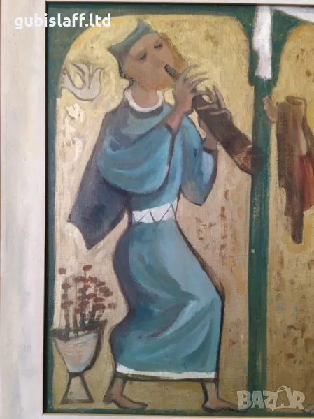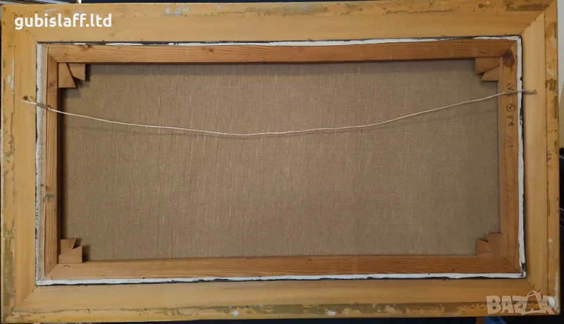 Маслени бои, платно, размер 100х50 см., размер с рамка 120х70 см., подписана, рисувана през 1970-те год. Трудно и рядко се появяват негови картини.