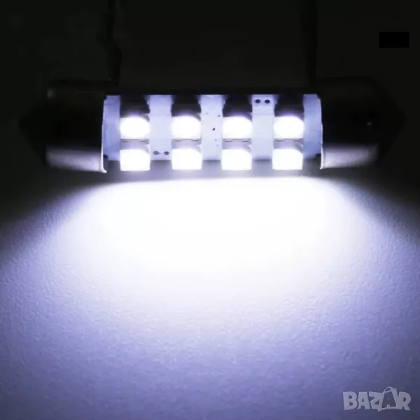 Нови LED крушки за плафон на авт0м0бил, осветление на рег. номер и др. Имат 8 LED диода - светят изключително ярко. Налични 2 размера: дължина 31мм и 39мм/ ширина 10мм