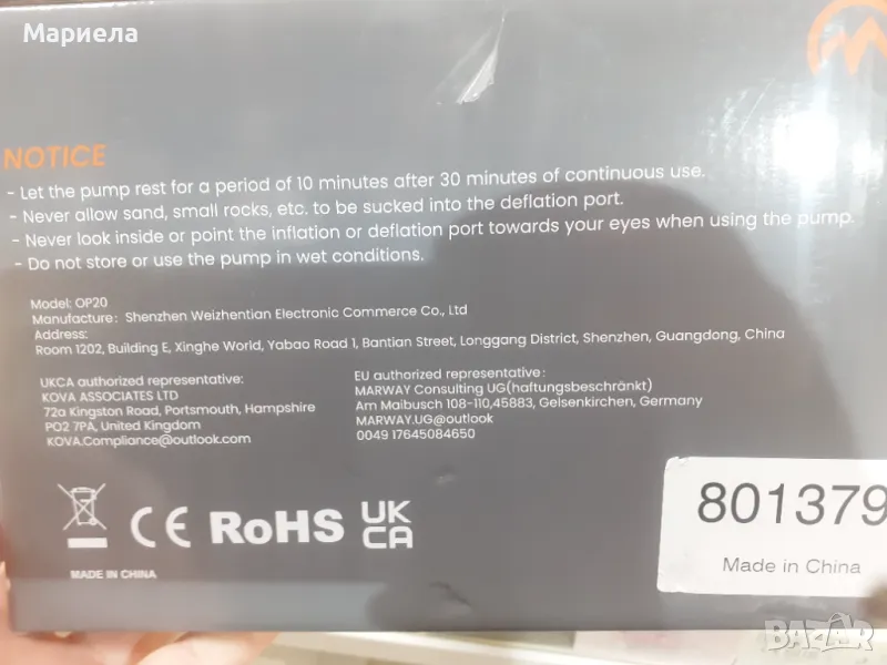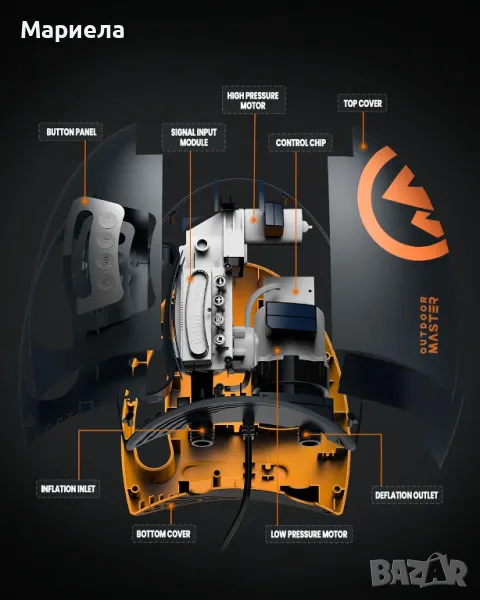 Помпа OutdoorMaster 2OutdoorMaster 20PSI SUP въздушна помпа с високо налягане Shark ,12V DC конектор