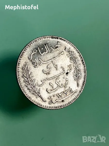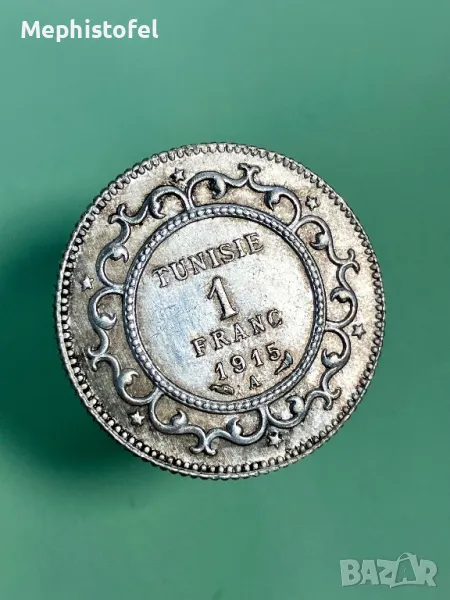 1 франк 1915 г, Тунис - сребърна монета