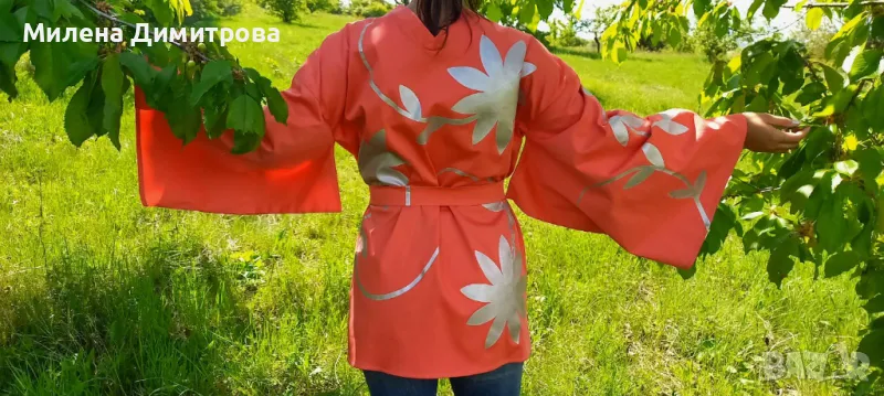 Ръчно рисувано сатенирано кимоно → Обява 48960098