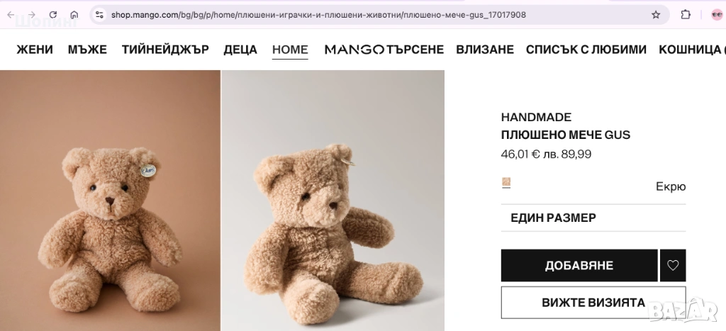 Чисто нови! Плюшено мече с панделка - 25 см. Цена 25 евро. Висококачествена изработка и пълнеж с безвредни материали. Меко и пухкаво. Налични два броя.