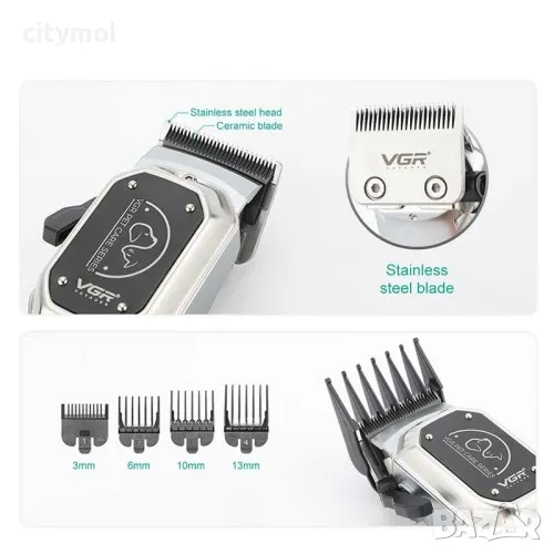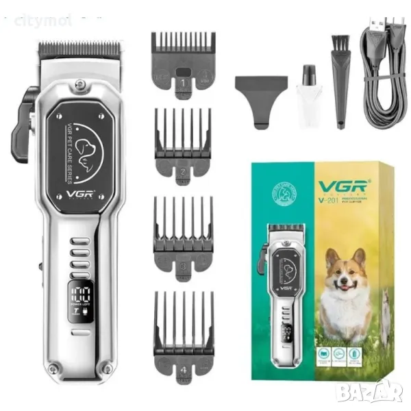 Професионална машинка за подстригване на домашни любимци VGR V-201, 4 приставки, USB зареждане