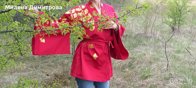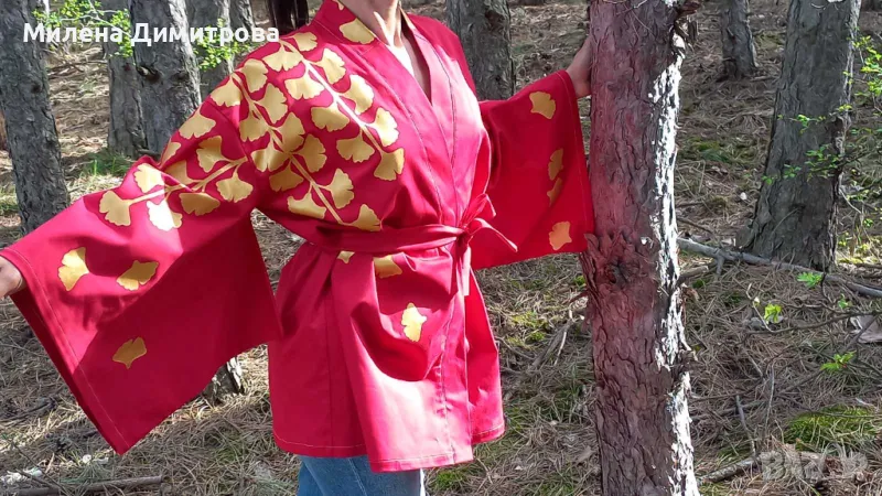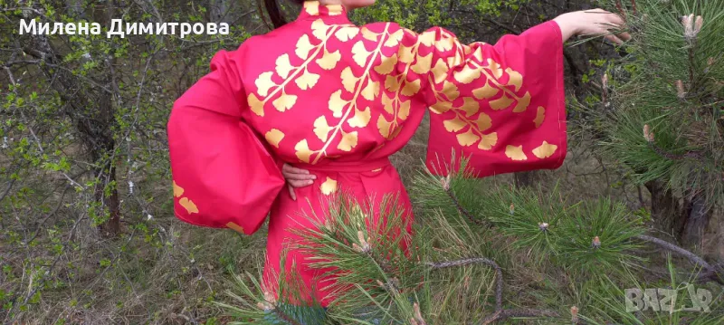 Ръчно рисувано сатенирано кимоно → Обява 48960469