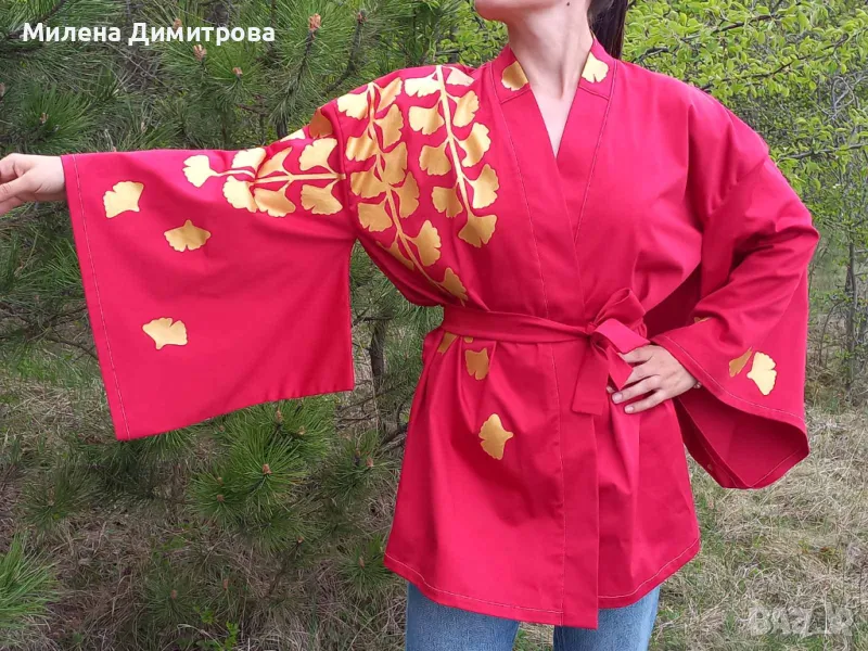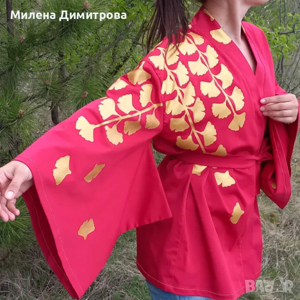 Дамско кимоно Златна Гинко Билоба - това кимоно е специално и единствено по рода си.