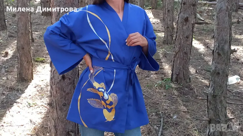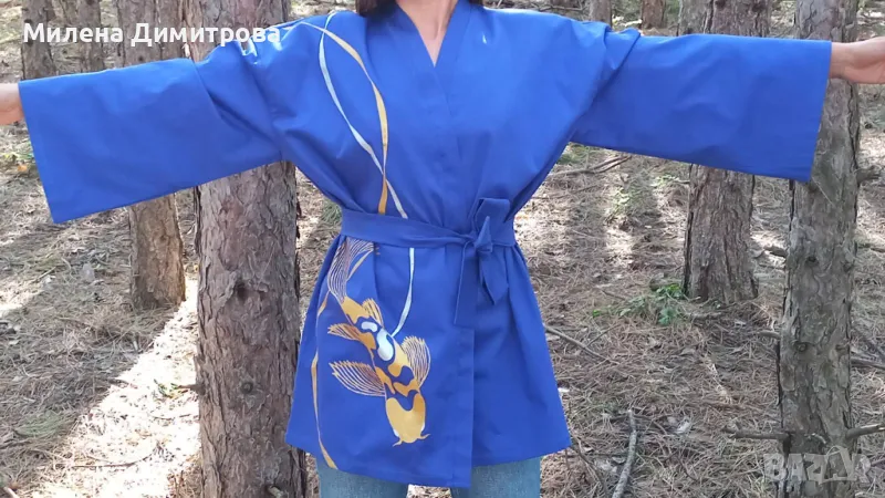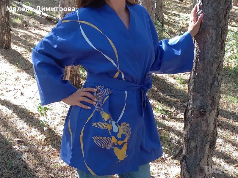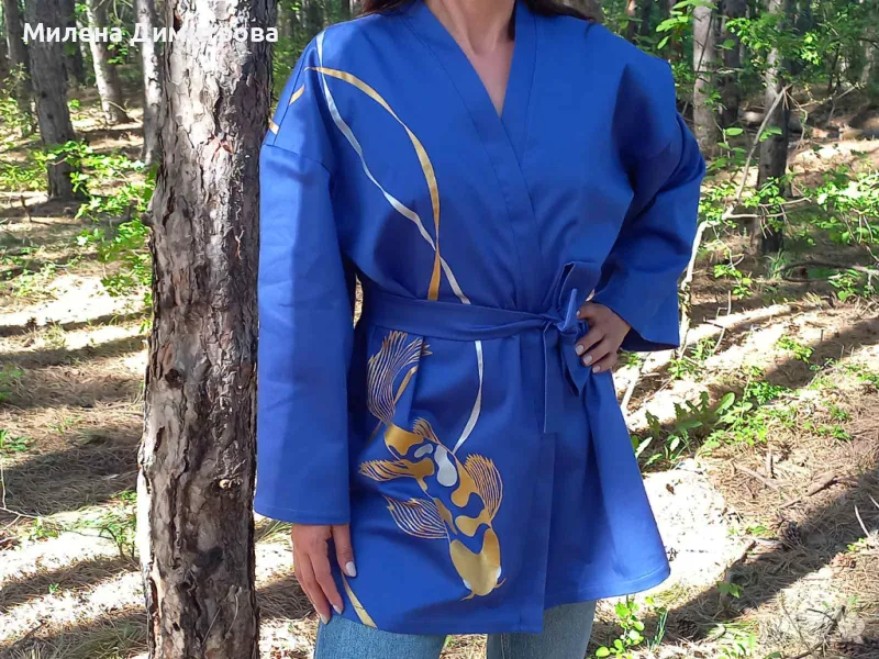 Ръчно рисувано сатенирано кимоно → Обява 48960802