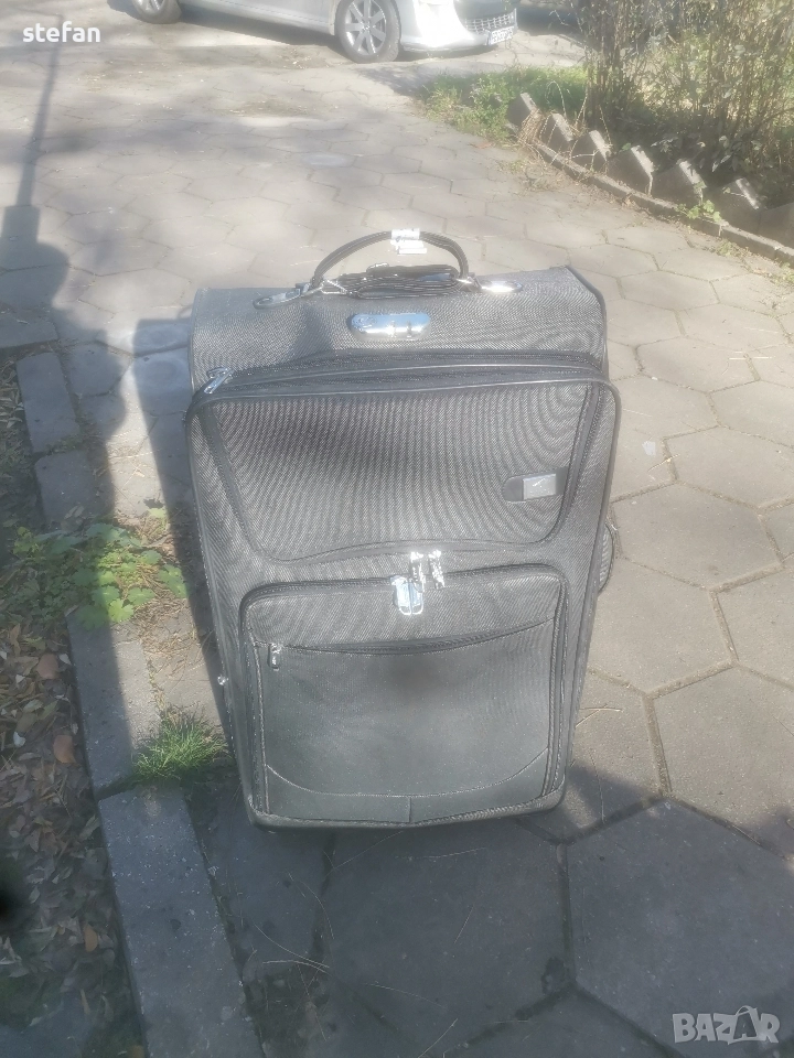 Два куфара единият от които е текстилен куфар с колелца циповете са здрави и работят с размери вис 65см шир 40см дълбочина 20см цената на по големият е 50лв