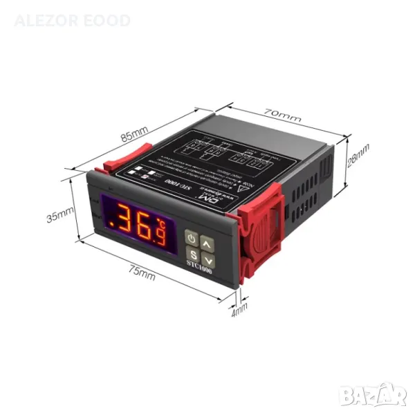 Терморегулатор -50 до +99 °C, Захр. 12VDC, 2изхода 230VAC/10А 2NO,4250