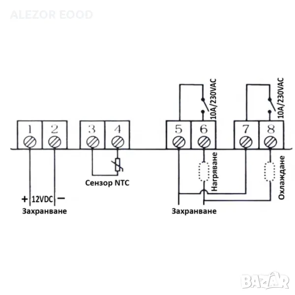 Клеми 5 и 6 - NO контакт на изход за нагряване