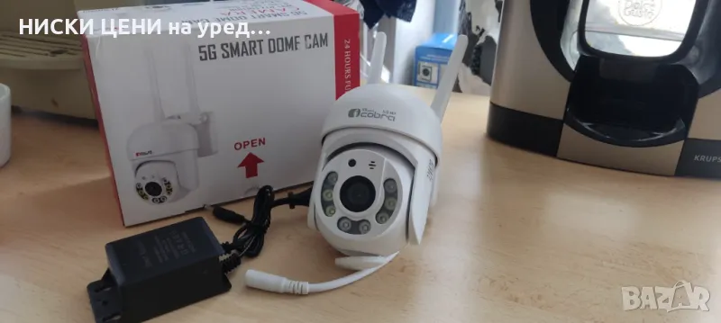 Wi-Fi Smart камера Full HD за наблюдение с автоматично следене на движението, цветно нощно виждане и двупосочна аудио връзка с управление от всеки телефон (Android, Apple) или компютър. Камерата е снабдена с мотор и се завърта във всички посоки. Управлението става директно, чрез смартфона – отдалечено. Камерата изпраща нотификации при засичане на движение и звук, директно на смартфона, чрез приложението с което работи. PTZ управление: 360-градусово хоризонтално завъртане и 80-градусово вертикално, като по този начин обхваща по-голям периметър. Отлично качество на картината с реални 5mpx бленда. За тази камера удължаващи кабели за захранването с размер накрайник/букса – 5,5mm X 2.1mm. не са подходящи.