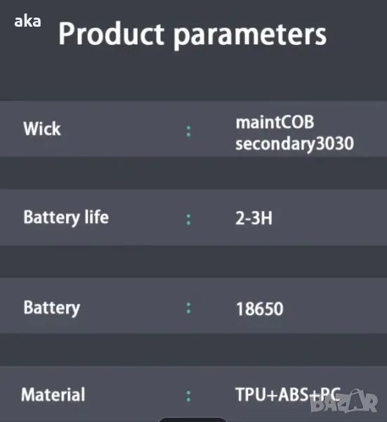 Време за работа (най-дълго): от 2 до 3 ч.постоянна светлина