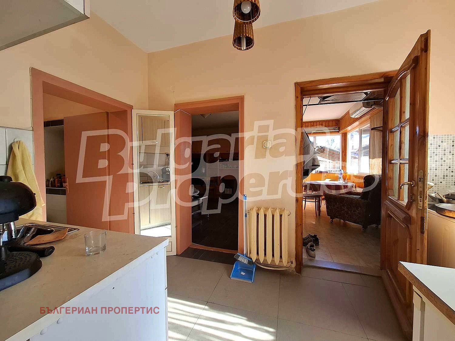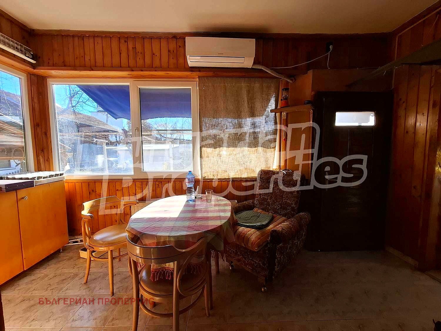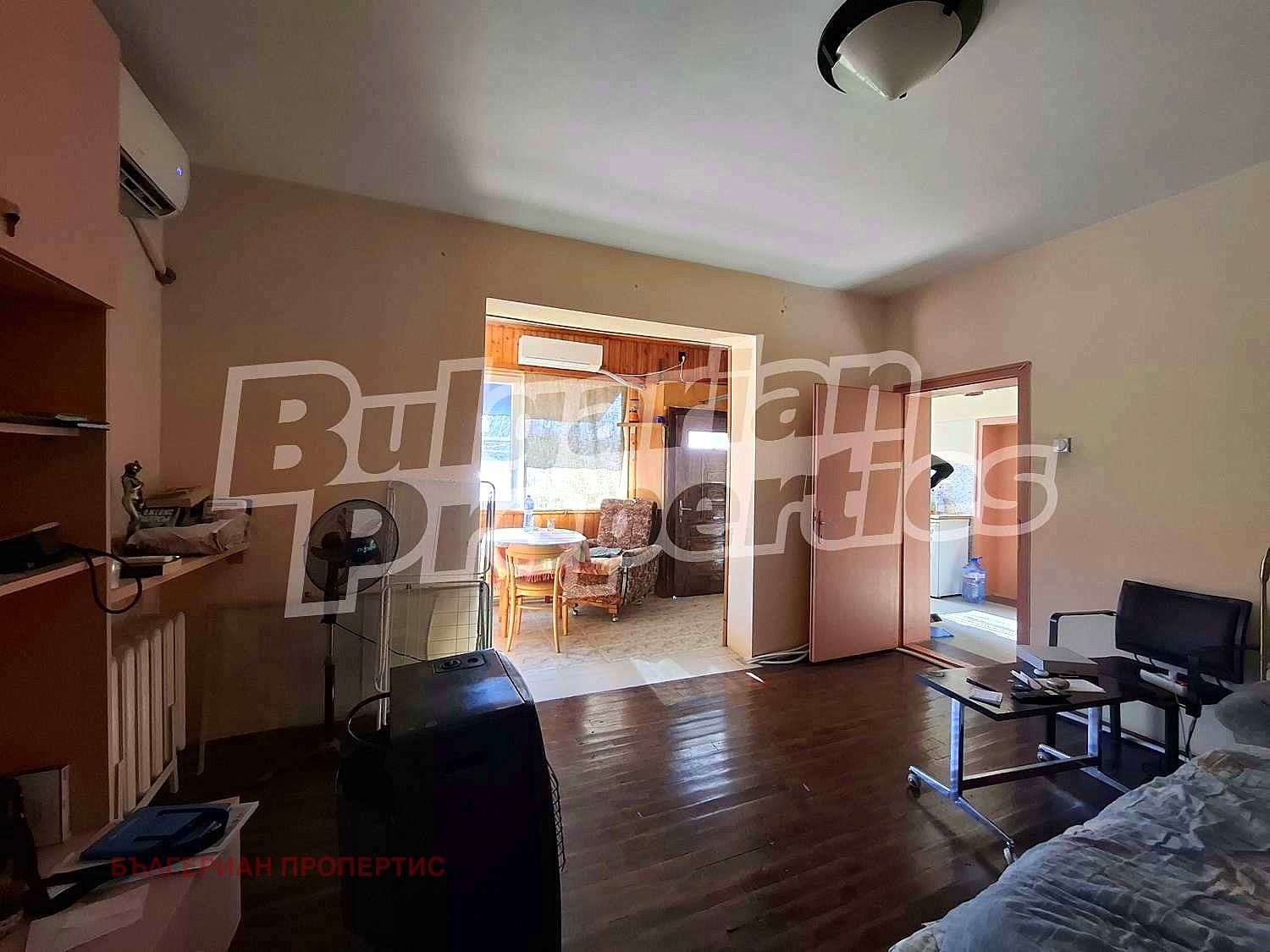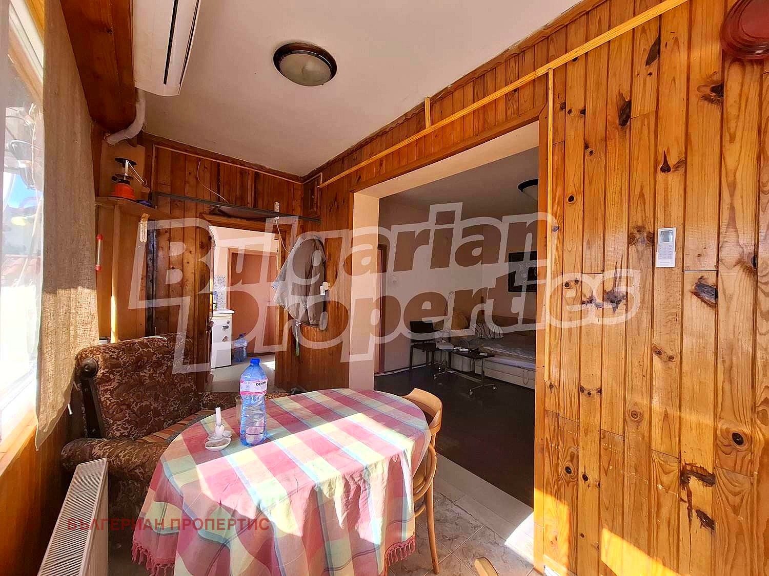 Основната къща е в добро състояние, обитаема и поддържана. За отопление има локално парно с ups, и допълнително 2 климатика. На разположение е входно антре пригодено за малка всекидневна, отворено към - хол. В съседство е изградена кухня и баня. В допълнителна постройка част от къщата, е разположено мазе с мивка и спалня - на приземно ниво.