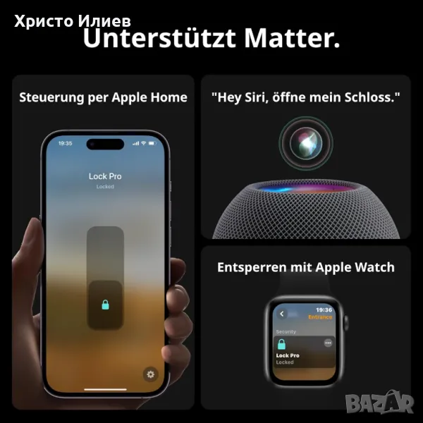 Отключването чрез гласова команда поддържа Matter: Lock Pro може да поддържа Matter чрез Hub 2 (закупува се отделно) и позволява използване с iPhone, Siri и Apple Watch чрез HomeKit. Lock Pro също е съвместим с платформи на трети страни като Alexa и Google. Това означава, че никога повече не трябва да бягате към вратата, за да я отворите.