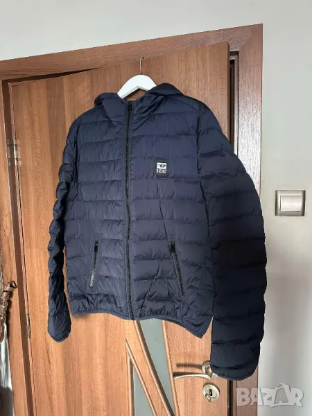 DIESEL МЪЖКО ТЕМНОСИНО ЯКЕ С ЦИП W-HANKS-HOOD PATCH.якето е като ново-но има изцапано отзад-затова е на тая цена.със пух е-за по топло време е.на Л размер отговаря