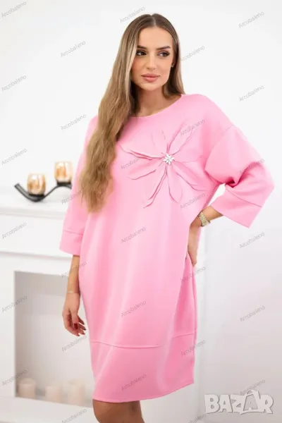 Роклята с декоративно цвете е квинтесенцията на женствения стил и елегантност. Отличава се с фин детайл под формата на декоративно цвете, което му придава уникален характер. Идеално вталената кройка подчертава силуета, като същевременно осигурява комфорт и свобода на движение. Изработена от висококачествени материали, роклята е подходяща както за специални поводи, така и за не толкова официални срещи. Декоративното цвете, поставено на деколтето, привлича вниманието и придава уникален израз на тоалета. Тази рокля е отличен избор за жени, които искат да подчертаят своята индивидуалност и да впечатлят с елегантна визия. Универсалният размер го прави подходящ за жени, носещи размери S, M или L, което го прави универсално допълнение към всеки гардероб.