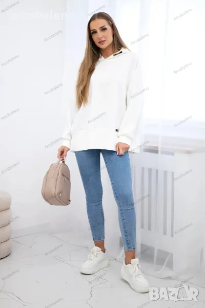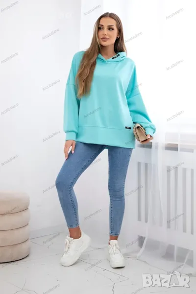 Суичър от вискоза е перфектна комбинация от комфорт и стил. Изработен от мека, дишаща вискоза, осигурява изключителен комфорт при носене. Качулката добавя небрежно докосване, което я прави идеална за ежедневни разходки, разходки или моменти на почивка. Неговият семпъл, минималистичен дизайн го прави универсален елемент от гардероба, който се комбинира лесно с дънки, клинове или спортни панталони. Това е чудесен избор за тези, които ценят практичността и модерния външен вид, независимо от повода. Предлага се в различни цветове, позволява лесно персонализиране на вашето облекло. Размерът е универсален и става за жени с размер S, M или L.
