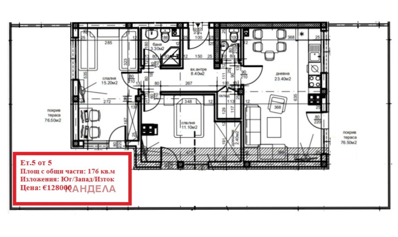 Предлагаме Ви да закупите просторен и светъл тристаен апартамент в новострояща се пететажна сграда. Много добри отзиви за помещенията, пространството и функциалността на жилището на клиенти от предишни завършени жилища с подобна квадратура и разпределение на инвеститора. За изграждането на комплекса се използват само висококачествени материали, отговарящи на изискванията и предпочитанията за модерно жилищно строителство. Сградата осигурява на своите собственици комфортна среда за живот чрез жилища, проектирани с максимално използване на вътрешните пространства, много светлина, изключително ниски разходи за енергия и малък процент общи части.