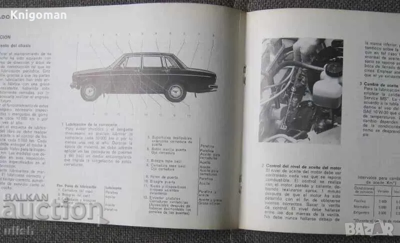 Описание за използване на автомобил Volvo 144, печатано в Швеция, меки корици, 62 страници, испански език, формат 12см х 15см.