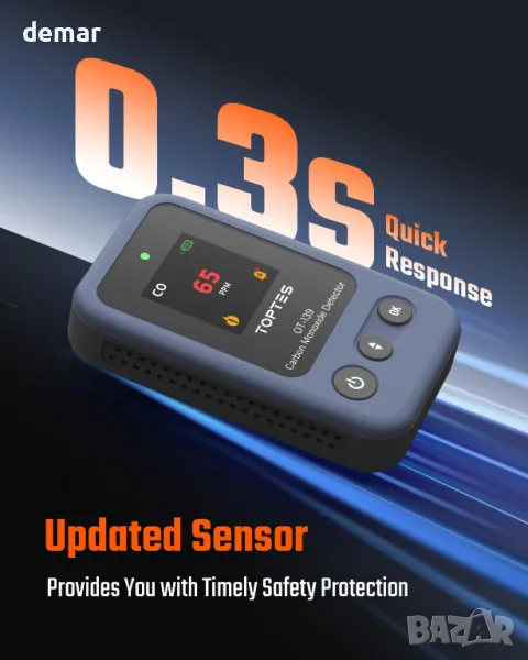 Ръчният детектор за въглероден окис OT-139 осигурява бързо и точно откриване на нивото на CO от 0 до 1000 PPM, като реагира само за 0,3 секунди за повишена безопасност. Той разполага с дълго време в режим на готовност от над 15 дни, поддържа зареждане тип C и елиминира нуждата от батерии. Проектиран за преносимост, той тежи само 55 грама и включва стойка и ремък за лесно поставяне у дома, докато пътувате или къмпингувате. Интелигентните сигнали уведомяват потребителите с визуални и звукови предупреждения, когато нивата на CO надхвърлят безопасните граници, докато зелената светлина показва нормална работа. Устройството е удобно за потребителя с три прости бутона, които не изискват настройка. Пакетът включва детектора, Type-C кабел, ремък и ръководство за потребителя, със строго фабрично калибриране и сертифицирано тестване на качеството за надеждна работа.