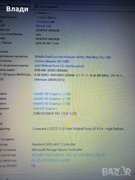 Lenovo Ideapad 100-15IBD/Pentium 3825U/8GB/500GB/Nvidia 920M 2GB/отлична батерия, снимка 1 - Лаптопи за дома - 48967473 Lenovo Ideapad 100-15IBD/Pentium 3825U/8GB/500GB/Nvidia 920M 2GB/отлична батерия, снимка 2 - Лаптопи за дома - 48967473 Lenovo Ideapad 100-15IBD/Pentium 3825U/8GB/500GB/Nvidia 920M 2GB/отлична батерия, снимка 3 - Лаптопи за дома - 48967473 Lenovo Ideapad 100-15IBD/Pentium 3825U/8GB/500GB/Nvidia 920M 2GB/отлична батерия, снимка 4 - Лаптопи за дома - 48967473 Lenovo Ideapad 100-15IBD/Pentium 3825U/8GB/500GB/Nvidia 920M 2GB/отлична батерия, снимка 5 - Лаптопи за дома - 48967473 Lenovo Ideapad 100-15IBD/Pentium 3825U/8GB/500GB/Nvidia 920M 2GB/отлична батерия, снимка 6 - Лаптопи за дома - 48967473 Lenovo Ideapad 100-15IBD/Pentium 3825U/8GB/500GB/Nvidia 920M 2GB/отлична батерия, снимка 7 - Лаптопи за дома - 48967473 Lenovo Ideapad 100-15IBD/Pentium 3825U/8GB/500GB/Nvidia 920M 2GB/отлична батерия, снимка 8 - Лаптопи за дома - 48967473 Lenovo Ideapad 100-15IBD/Pentium 3825U/8GB/500GB/Nvidia 920M 2GB/отлична батерия, снимка 9 - Лаптопи за дома - 48967473 Lenovo Ideapad 100-15IBD/Pentium 3825U/8GB/500GB/Nvidia 920M 2GB/отлична батерия, снимка 10 - Лаптопи за дома - 48967473 Lenovo Ideapad 100-15IBD/Pentium 3825U/8GB/500GB/Nvidia 920M 2GB/отлична батерия, снимка 11 - Лаптопи за дома - 48967473 Lenovo Ideapad 100-15IBD/Pentium 3825U/8GB/500GB/Nvidia 920M 2GB/отлична батерия, снимка 12 - Лаптопи за дома - 48967473 Lenovo Ideapad 100-15IBD/Pentium 3825U/8GB/500GB/Nvidia 920M 2GB/отлична батерия, снимка 13 - Лаптопи за дома - 48967473 1/13