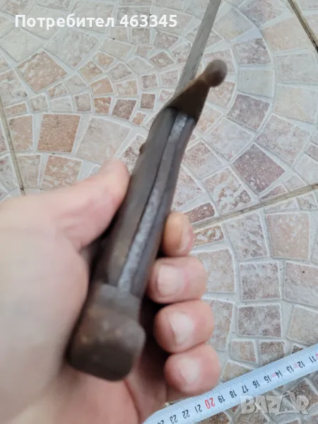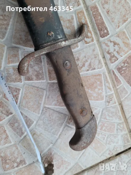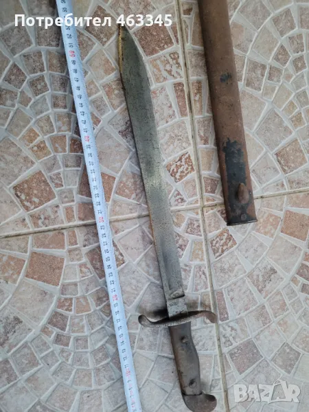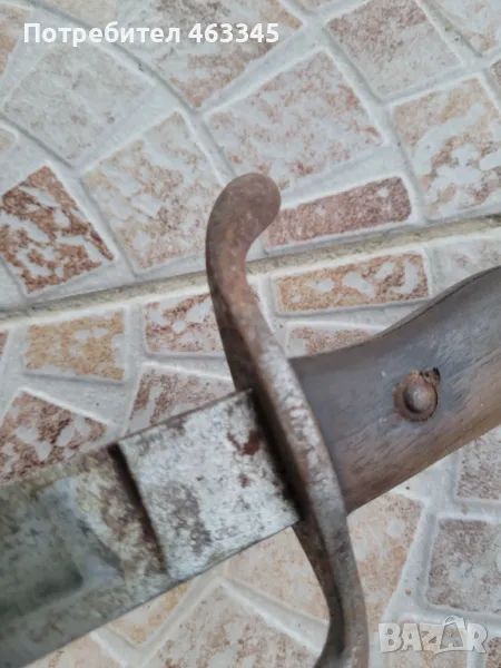 Аржентински тесак от първата половина на 20-ти век. Ножната е без огънато, счупено или вдлъбнатини и е покрита с ПОВЪРХНОСТНА ръжда. Тесакът е с острие практически без ръжда, а само с добра патина. Чирените нямат счупено или подбито. Непочистван, незаточван