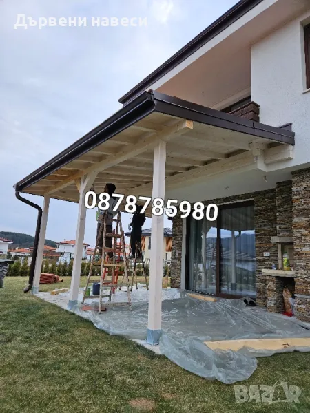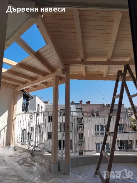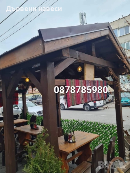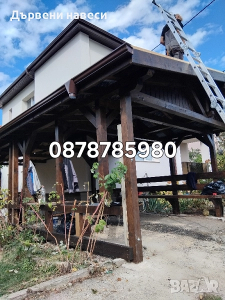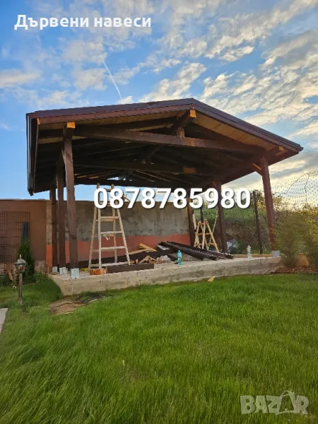 навеси, беседки, барбекюта и гаражи, като целият дървен материал се шлайфа и импенгрира. Гаранция, договор направа на всякакви навеси от дърво, навеси на тераси, гаражни навеси за автомобили, навеси за летни кухни, барбекю и зимни градини от дърво
