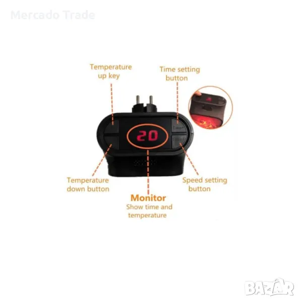 - Вграден регулируем термостат и таймер за включване / изключване. - Малък, лек и лесен за използване, просто го включете в контакта.