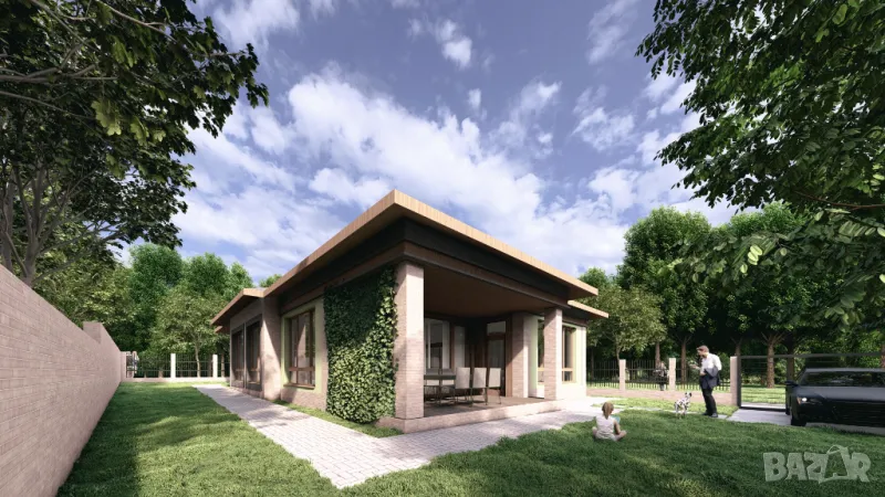 Проекта е преминал от идеен до завършен вид ,с много уточнения,консултаций,мислене,детайли,опитност ,за да се достигне до почти съвършен вид, на една страхотна еднофамилна къща със застроена площ 164 кв .м., в съвременен стил,с пастелни резидави външни стени и керемиди в цвят антрацид,но спазвайки все пак, българските традиции за стоманено-бетонова монолитна конструкция.