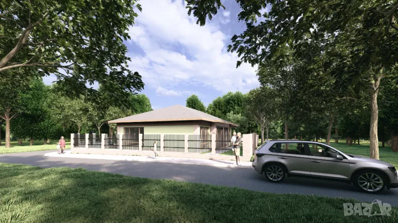 Покрива е с керемиди Брамак,към самия проект за къщата има и допълнения за двора с парко места,септична яма,сондаж,масивна ограда от задната страна и законна ,отворен тип ограда на лицевата част. Проекта включва 3 огромни папки с максимално детайлна информация,CD, 3D проекция, архитектура,ВиК,геодезия,ЕЕ,ЕЛ,конструкция.ОВК