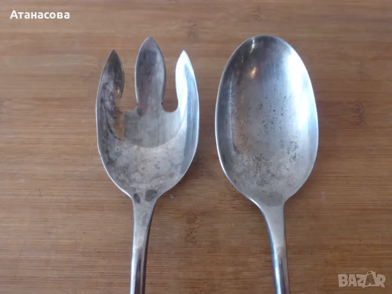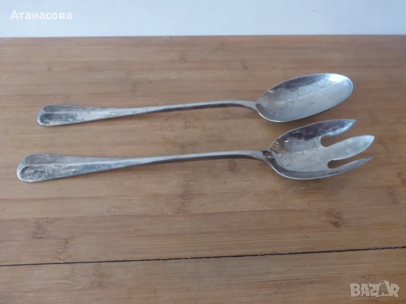 Дълги посребрени прибори за салата 31 см 1950 г → Обява 48970336