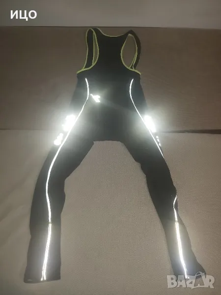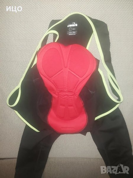Състояние много добро на гащеризона за колоездене на Diadora. Със ципове на глезените и лента против преплъзване. Не е еластичен. 90% полиестер 10% еластант. Дължина от рамо на презрамките до долу 136см. широчина на глезените 14см. Размер L 180см. Цена 105лв.