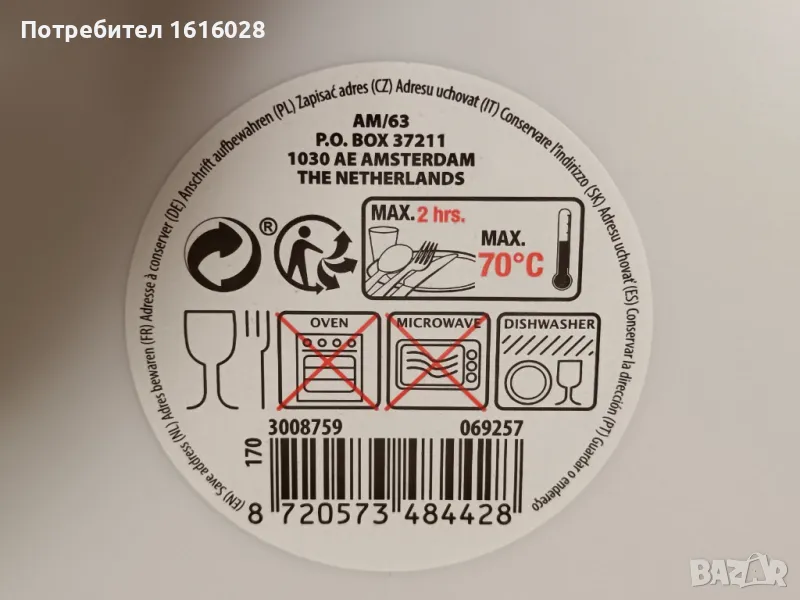 Купата не е предназначена за употреба в готварска печка и микровълнова фурна.