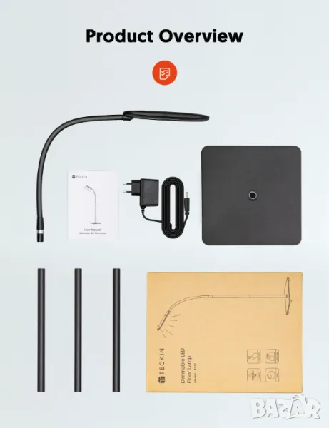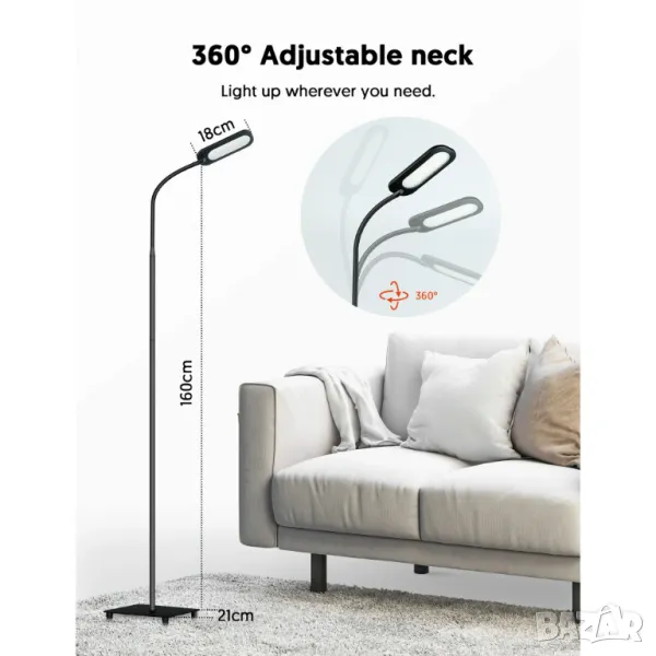 Гъвкава подова лампа с гъша шия с мека въртяща се гъша шия, лесна за сгъване и завъртане на лампата, за да регулирате ъгъла на осветяване. Технически спецификации: