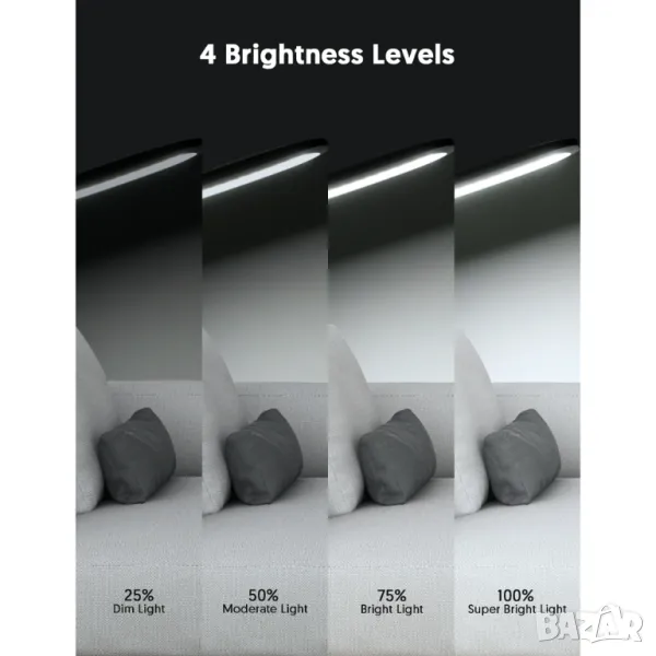 4 нива на яркост Кратко натискане на бутона "ВКЛ./ИЗКЛ.": Включване / Увеличаване и намаляване на яркостта.