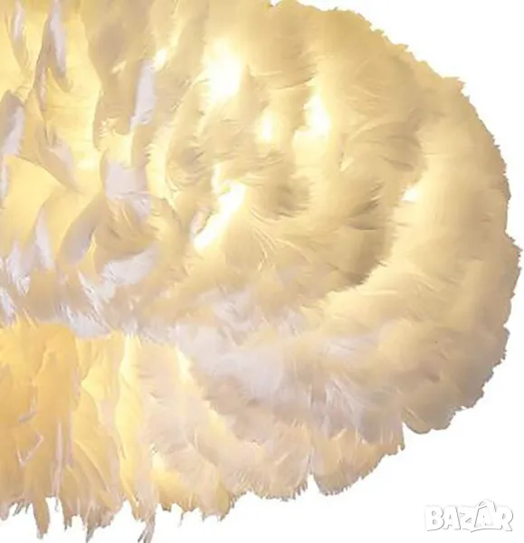 Материал: Хардуер + ръчно плетени с подбрани висококачествени пера, Основа на крушката: E27 (Крушката не е включена) Съвместима с Led, Ние препоръчваме Led крушки, Спестете енергия и животът е дълъг.