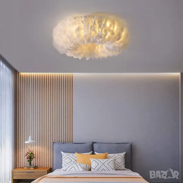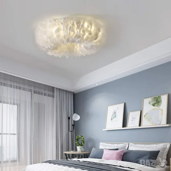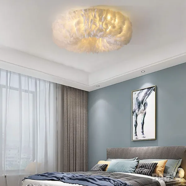 Полилей Таванна лампа Полилей с бяло перо, Модерни LED осветителни