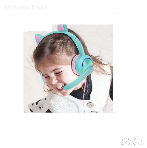 Светещи Детски слушалки с микрофон - Котешки уши Съвместими с Xbox one, превключвател Nintendo, playStation 4, компютър, лаптоп, iPad, iPhone и Andoid Телефони BT5.0 връзка: технология BT5.0, бърза и стабилна връзка. Лесно