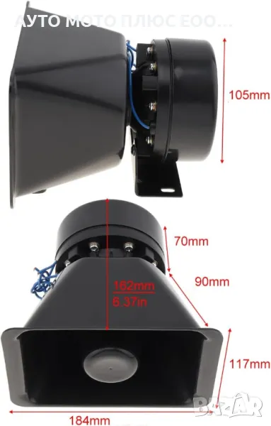 Мощност на сирената 100W.