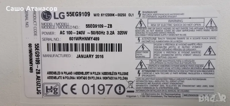 LG 55EG9109-ZB със счупена матрица ,LGP55C-150P ,EAX66564604(1.0) ,6870C-0477H ,LGSBW41 ,EG9200_v0.5