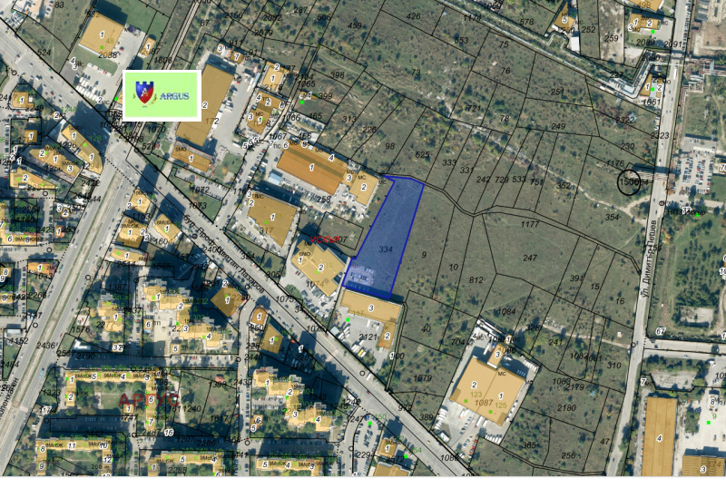 АРГУС продава поземлен имот, находящ се зад EXPRESS ONE BULGARIA на бул. Проф. Цветан Лазаров и опиращ до източните граници на парцела на ЮНИТРЕЙД Х и ОФИС ИДЕЯ ПЛЮС. 1/4 от площта на имота попада в устройствена зона Смф, а другата част в Пмс.