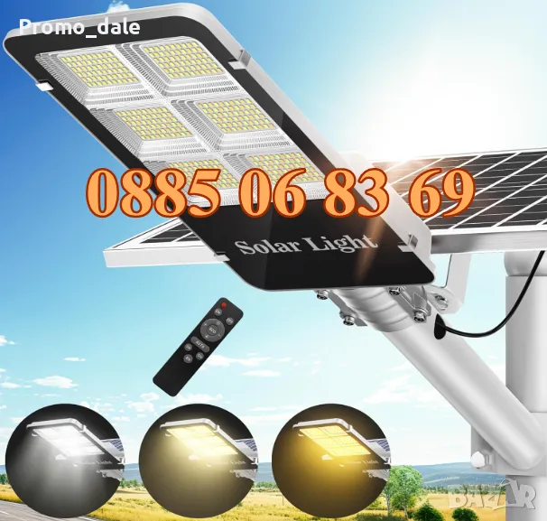Улична соларна лампа 1800W с панел и стойка, соларна градинска лампа
