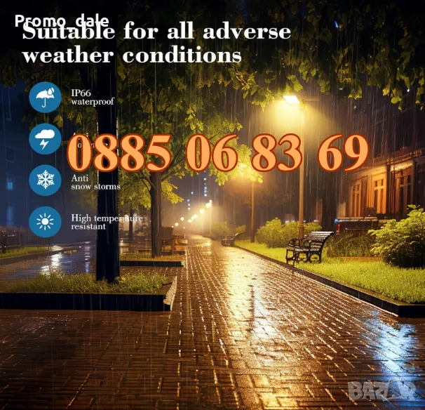 Соларна лампа JORDAN 1800W с 6 секциионни прожектора е ефективно външно осветление със соларен панел. Това усъвършенствано решение за осветление е идеално за осветяване на обширни външни пространства като улици, паркове, пазари, градински пътеки и много други области, които изискват мощен и надежден източник на светлина. Снабдена е с 6 секциионни прожектора, които са проектирани да максимизират улавянето на слънчевата енергия, ефективно превръщайки слънчевата светлина в електричество, съхранявано в здрави батерии.