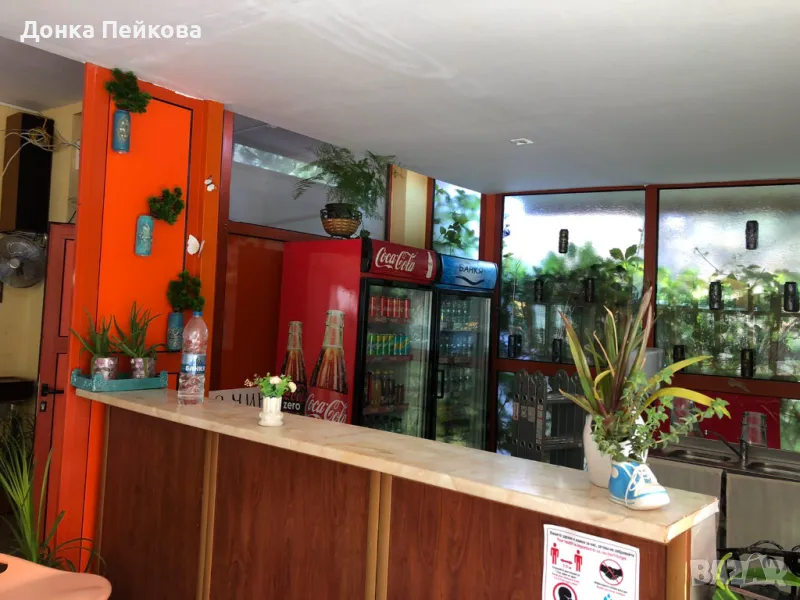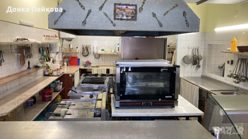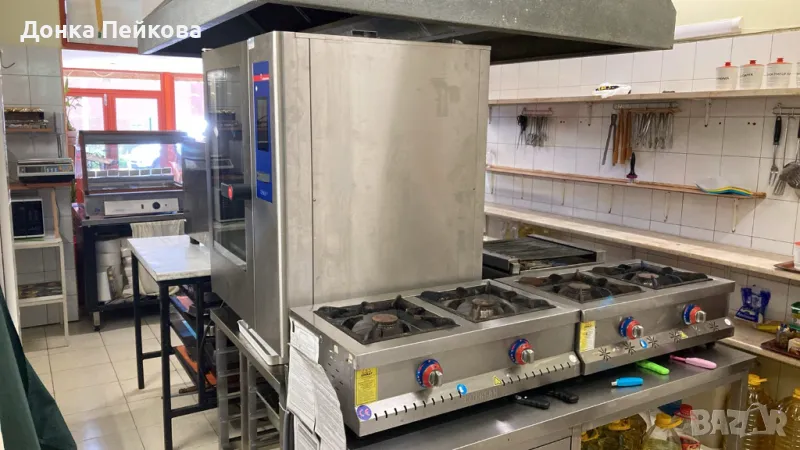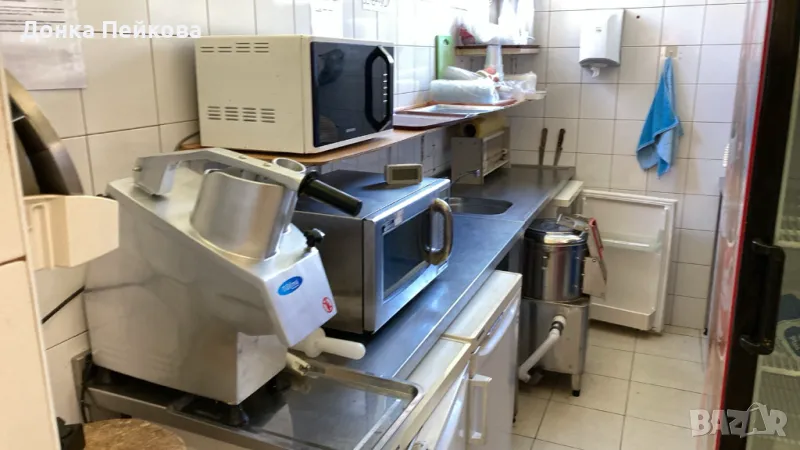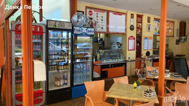 Бар с хладилни витрини, хладилници, кафемашина, нова миялна машина, миксери и дребна техника.