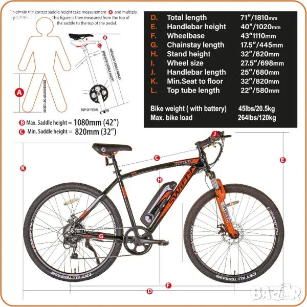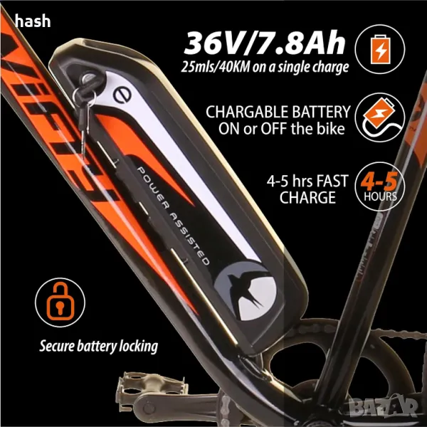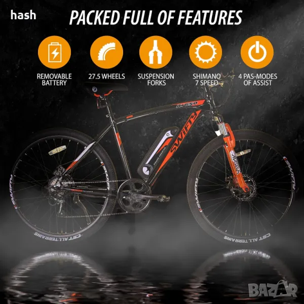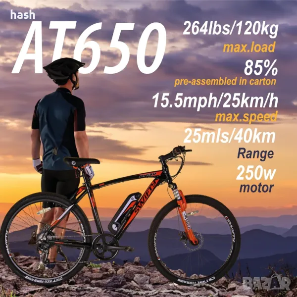 Планински електрически велосипед Swifty AT650 с батерия на рамката, унисекс, 250 W, 36V, 27.5"