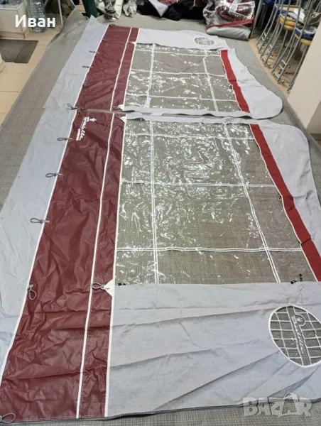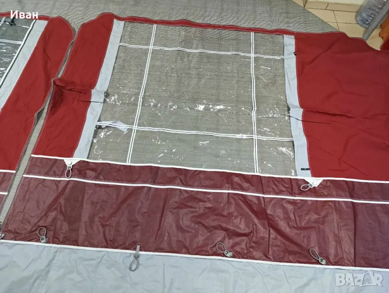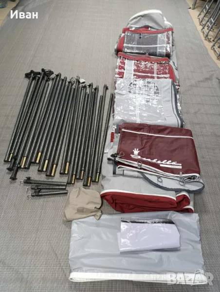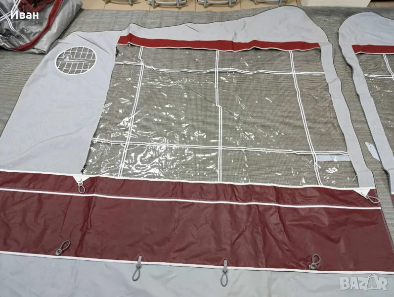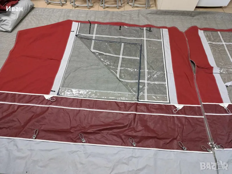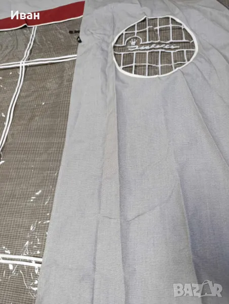 Само малка следа от изцапано на едната калобранна пола, която лежи на земята. Напълно окомплектован! Светли, кристално чисти прозорци. Отлични ципове. Конструкцията без никакви следи от използване.